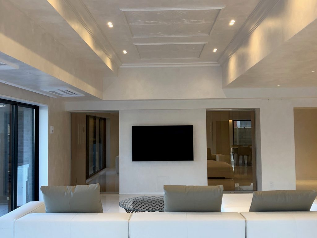 (壁掛けテレビの背面壁内に未使用時は収まります)